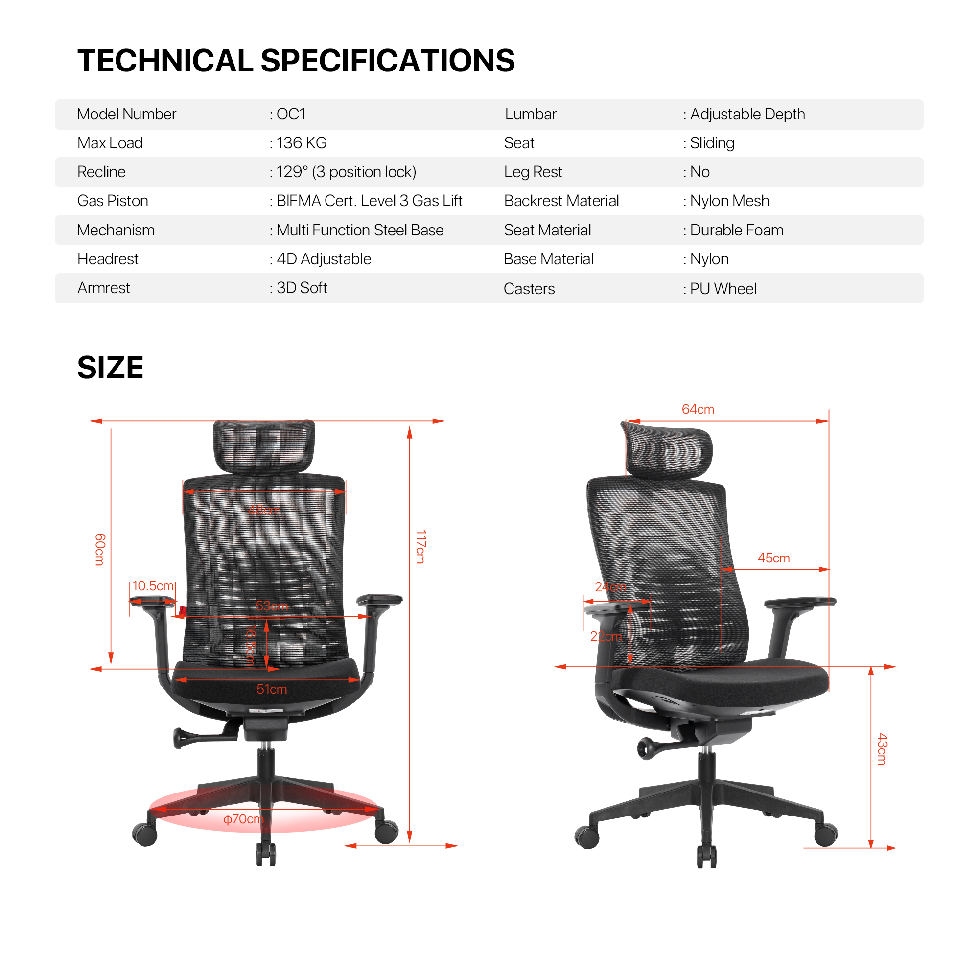 تصميم عميق قابل للتعديل يناسب الانحناء الطبيعي لعمودك الفقري، مما يقلل من الضغط ويبقيك مدعومًا بشكل مريح طوال اليوم.