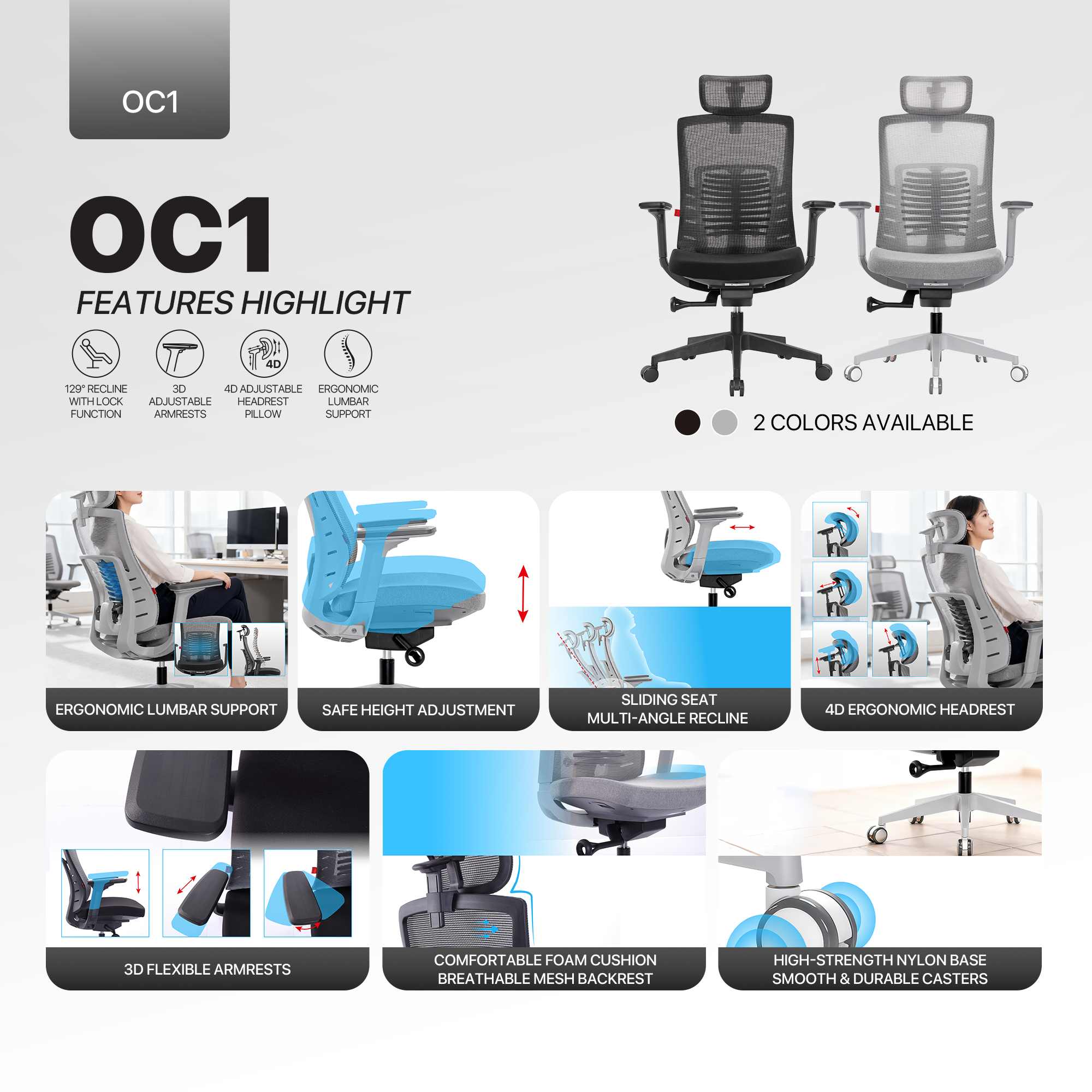 قابل للتخصيص بالكامل من حيث الارتفاع والعمق ودعم الرقبة المصمم للإمالة مما يقلل الضغط ويساعدك على الجلوس بشكل أكثر صحة.