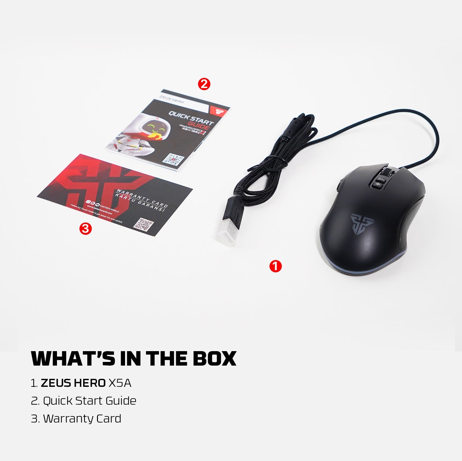 Fantech Zeus X5A (أو X5s) عبارة عن ماوس ألعاب RGB سلكي يمكن استخدامه بكلتا اليدين ويتميز بمستشعر بصري 4800 نقطة في البوصة ومعدل اقتراع 1000 هرتز وعمر 10 ملايين نقرة، مصمم لتوفير الراحة باستخدام كابل بطول 1.8 متر. تشتمل الميزات الرئيسية على 7 أزرار قابلة للبرمجة وعجلة تمرير معدنية وإضاءة RGB.