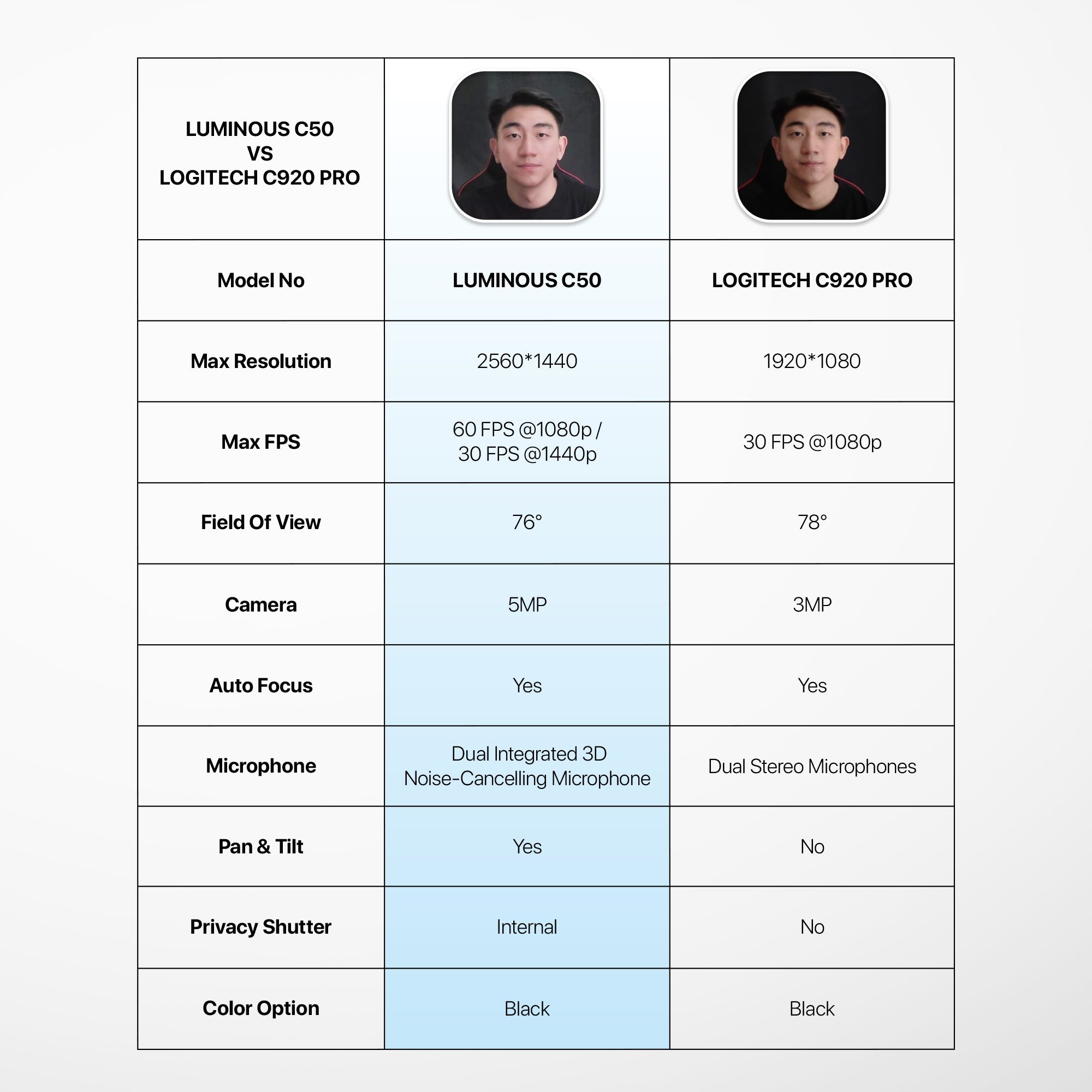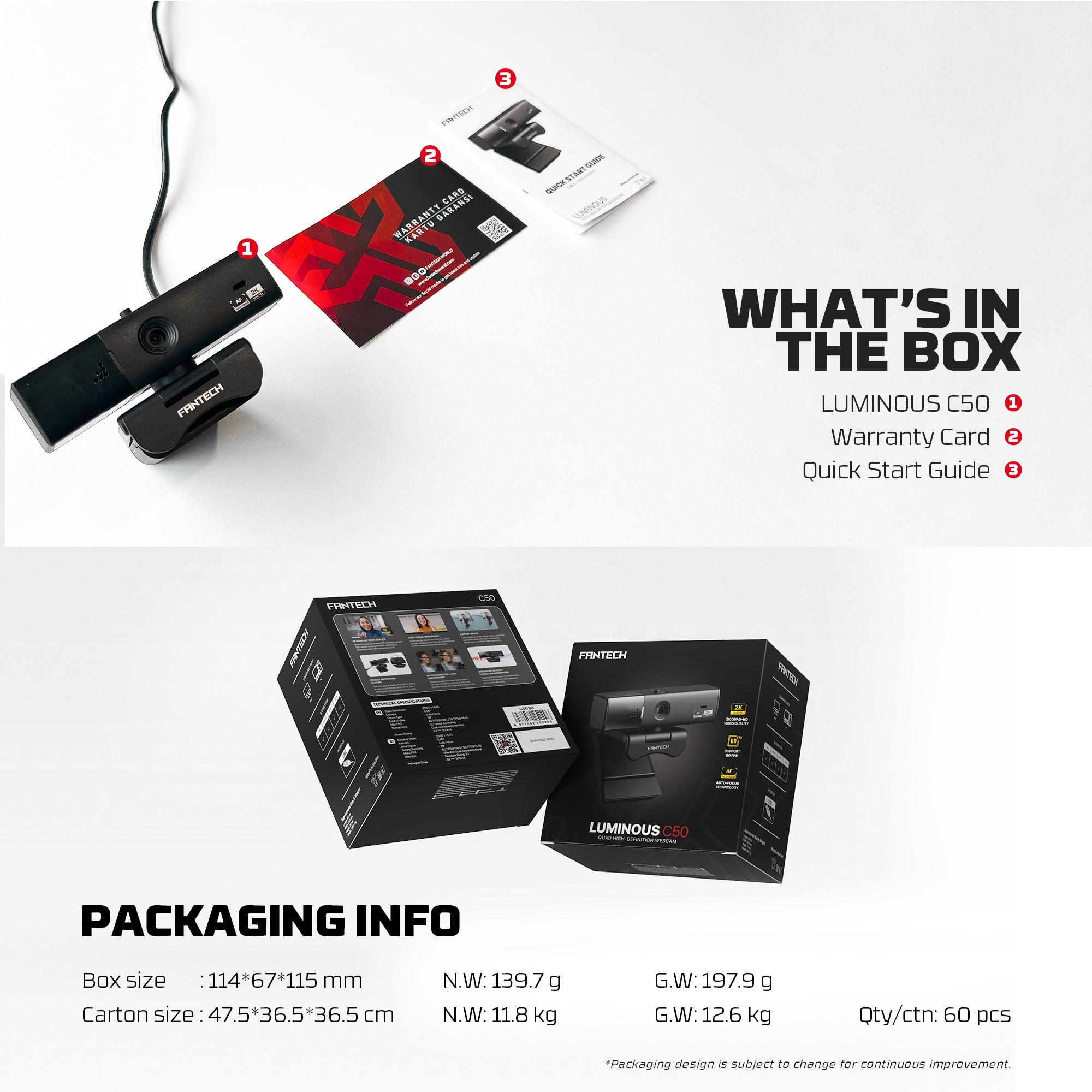 Fantech Luminous C50 Quad High-Definition Webcam 2K Quad-HD Support 60 FPS & 3D Noise Cancelling Mic